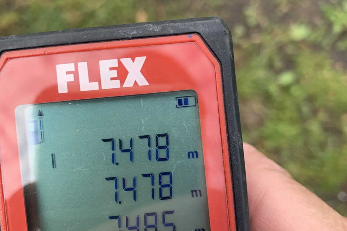 Letztes Messen für die Terasse. Der Plan für den Unterbau steht, die finale Entscheidung für die Dielen ist noch offen.